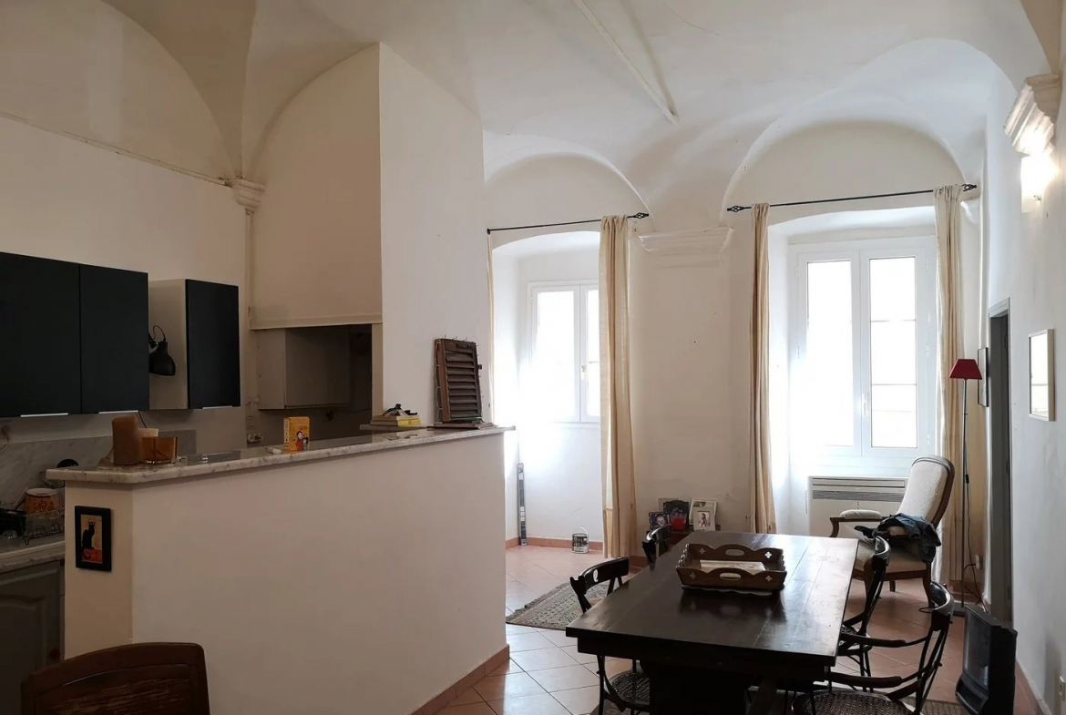 Bastia, à 2 pas du quai des Martyrs et du Marché, 3 rue Saint-Erasme, appartement 1er étage dans immeuble dégradé, (Frais de rénovations votés inclus dans le prix de vente). Plafonds voutés à 4 mètres, deux chambres, séjour-cuisine, salle de douche avec wc. A savoir, établissement de nuit juste dessous au rez-de-chaussée causant d’importantes nuisances sonores les soirs d’ouvertures. Idéal